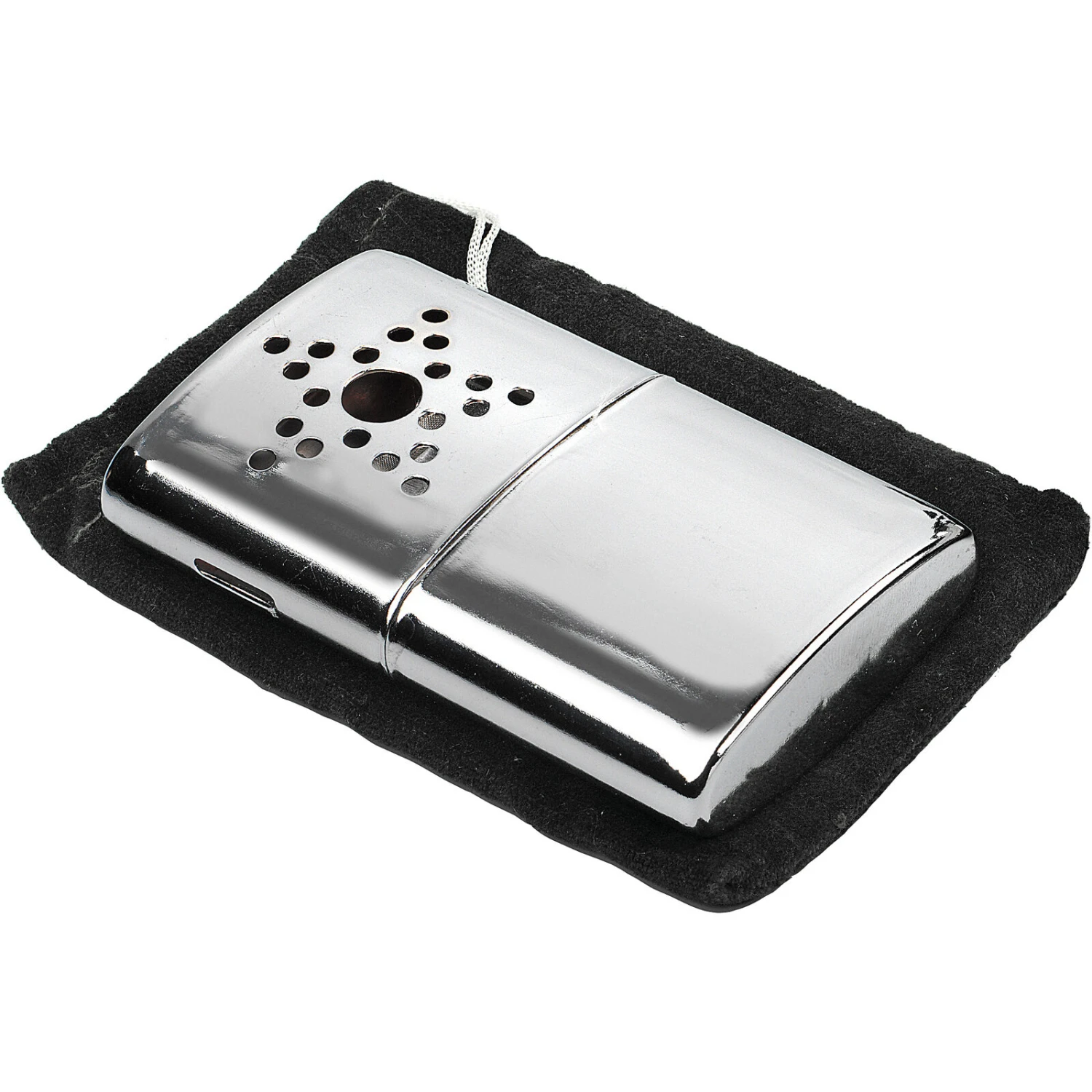 Deze handwarmer zorgt er voor dat je met koudere dagen ook lekker warme handen hebt. De handwarmer werkt op aanstekervloeistof zoals Zippo en kan veilig in je handen gehouden worden.