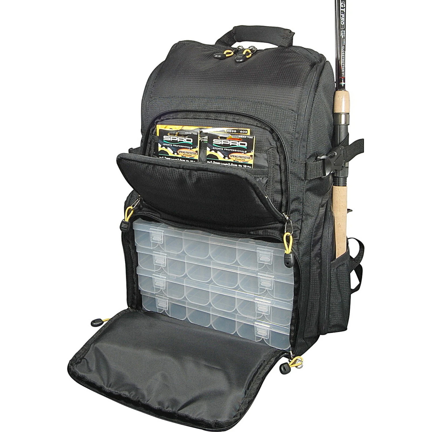 Hoge kwaliteits rugzak van Spro met grote capaciteit en zijvakken om al je visspullen in op te bergen. De rugzak heeft een 600D PU Coating waardoor deze waterafstotend is en is enorm handig ingedeeld. Aan beide zijkanten van de rugzak zit een riem en steun zodat je ook je hengel er aan kunt hangen. De rugzak heeft naast de vakken die te zien zijn ook nog bovenop een groot vak (bijna de helft van de rugzak).